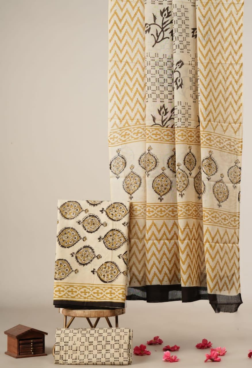 Block Print Cotton Suit With kota Doriya Dupatta