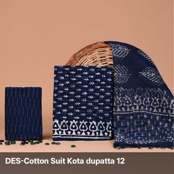 Elevate your ethnic wardrobe with this beautifully handcrafted Block Print Cotton Suit with Kota Doriya Dupatta – a perfect blend of tradition, elegance, and everyday comfort.
