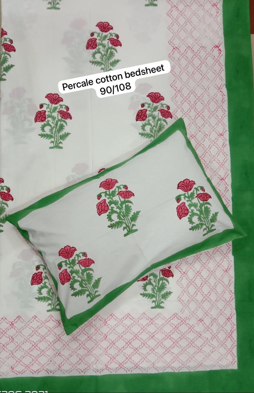 Block Print Percale Bed Sheet With 2 Pillows