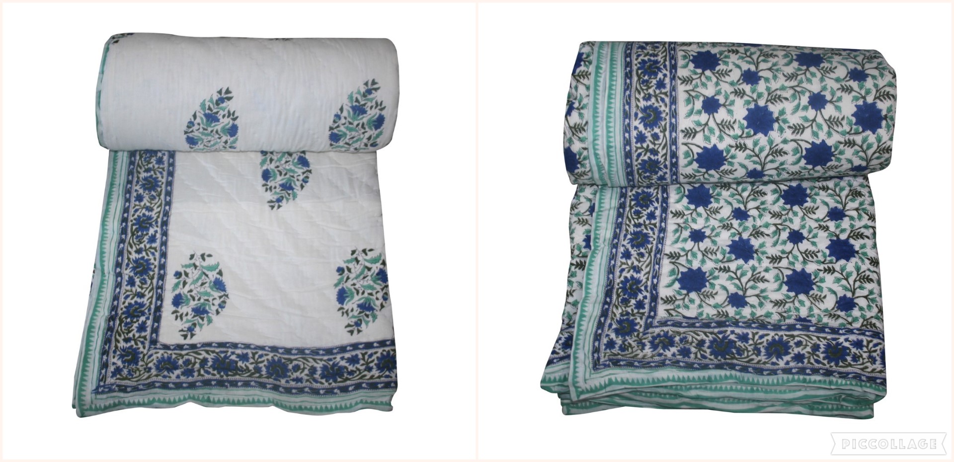 Introducing our exquisite Handblock Print Jaipuri Razai, crafted in Jaipur using age-old block printing techniques and fine quilting traditions.