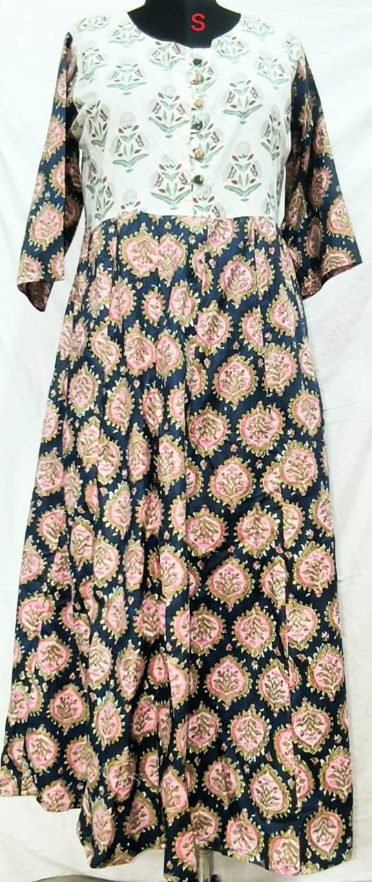 Inspired by the timeless textile heritage of Jaipur, this Jaipuri Print Cotton Long Dress Kurti beautifully blends traditional artistry with everyday comfort. Crafted from soft, breathable cotton fabric, the kurti features authentic hand-block inspired prints that add a graceful ethnic charm to your wardrobe.