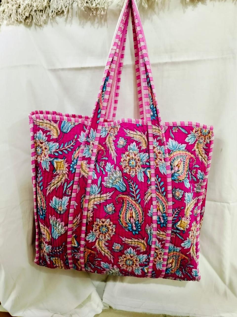 Jaipuri Print Cotton Quilted Tote Bag