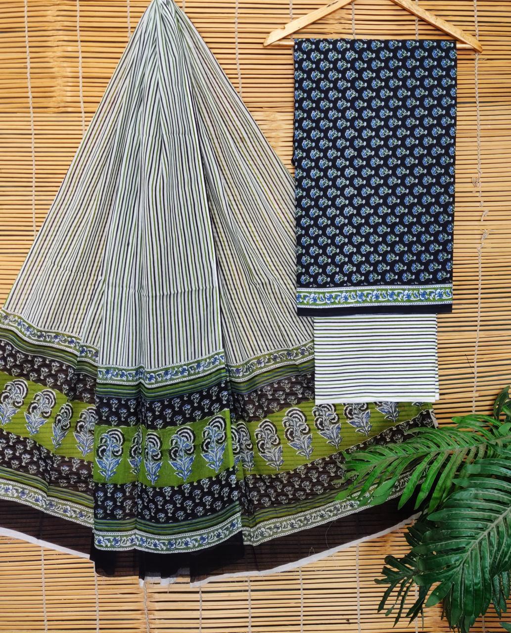 Block Print Cotton Suit With kota Doriya Dupatta