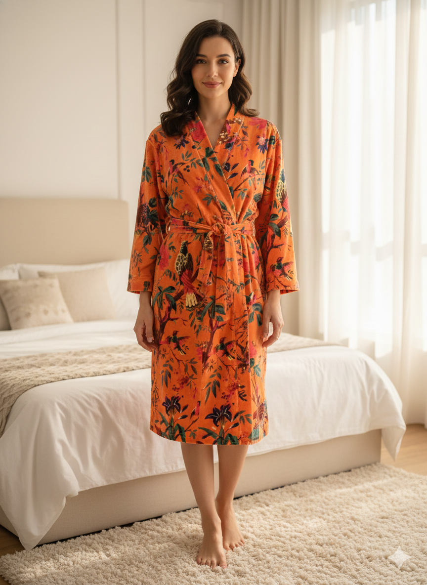 Jaipuri Print Cotton Velvet Robe