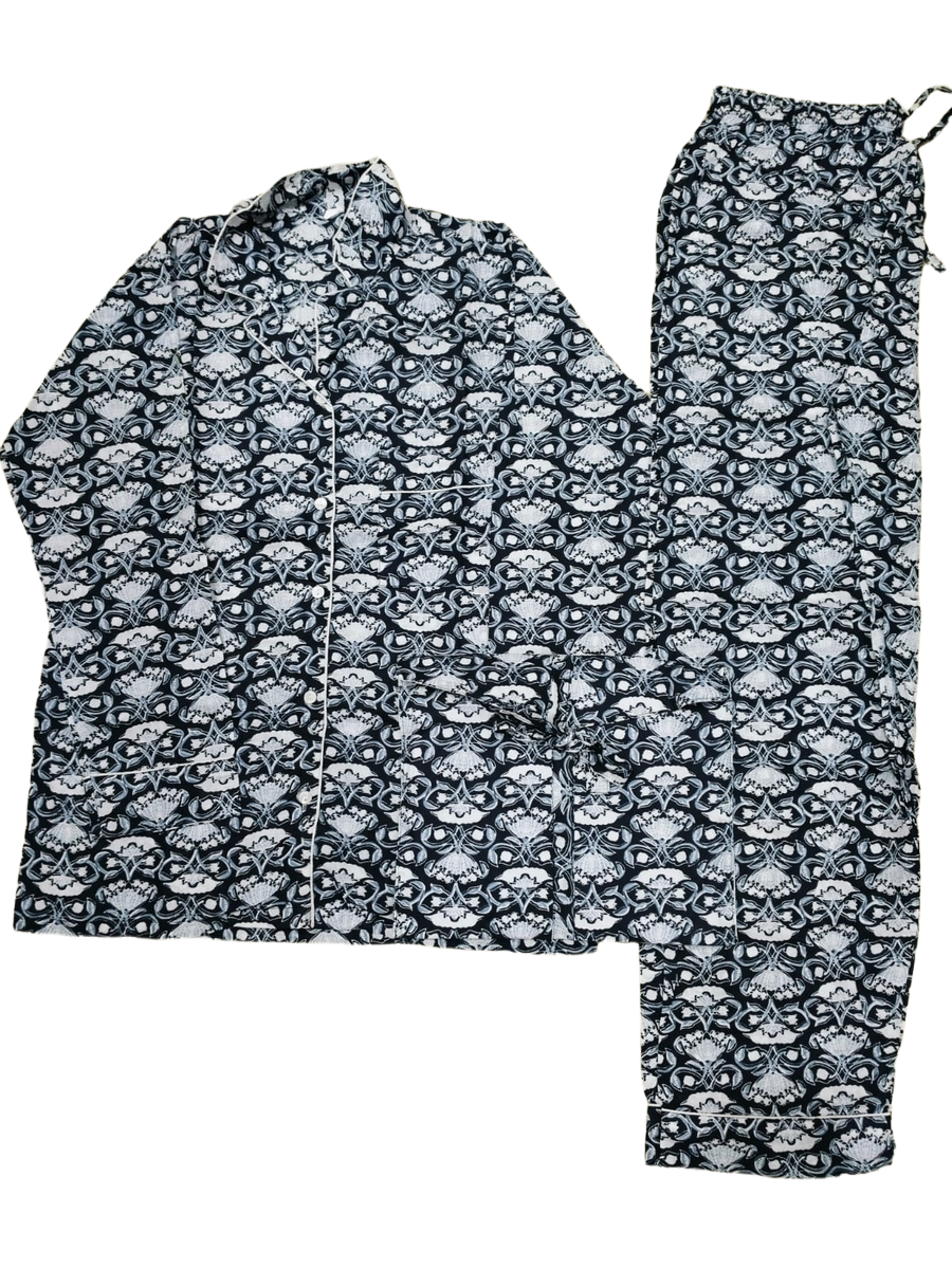 The set includes a comfortable button-down shirt/top with a relaxed fit, and straight or tapered pajama bottoms with an elasticated waistband for ease of movement and flexibility. Available in a variety of vibrant colors and authentic patterns, each set is a reflection of India’s artisanal beauty.