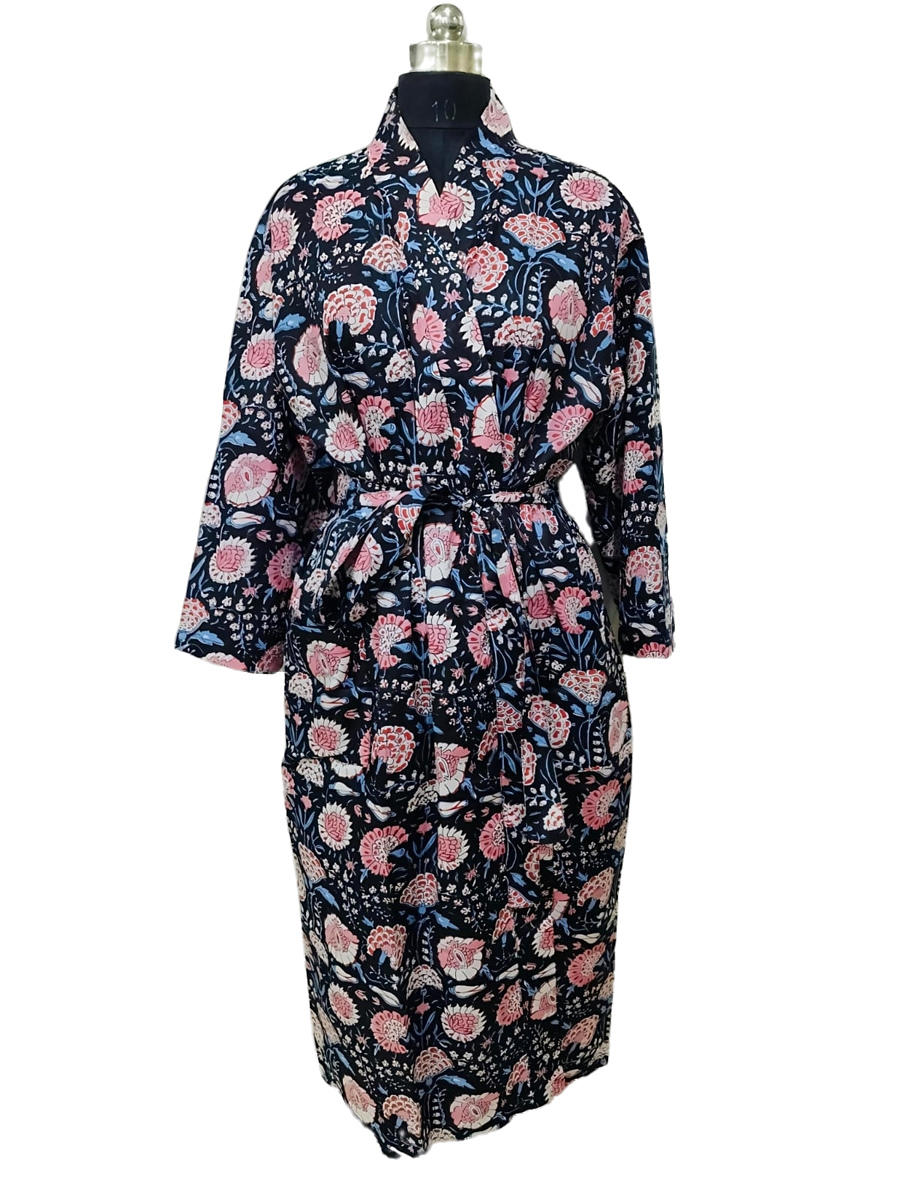 Wrap yourself in timeless elegance with this handcrafted Jaipuri print robe. Made from 100% soft cotton, it features intricate Jaipuri prints inspired by the rich heritage of Jaipur. Lightweight yet durable, this robe is perfect for lounging at home, spa days, or as a thoughtful gift.