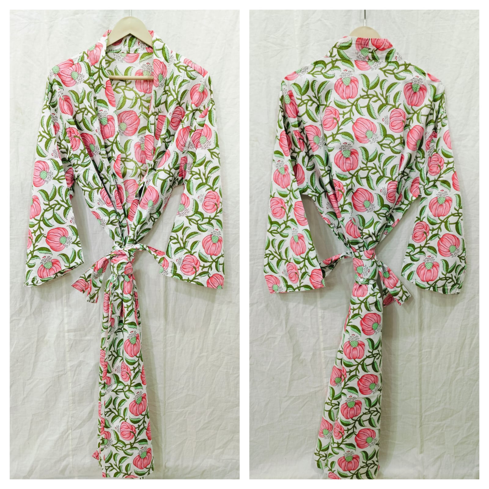 Wrap yourself in timeless elegance with this handcrafted Jaipuri print robe. Made from 100% soft cotton, it features intricate Jaipuri prints inspired by the rich heritage of Jaipur. Lightweight yet durable, this robe is perfect for lounging at home, spa days, or as a thoughtful gift.