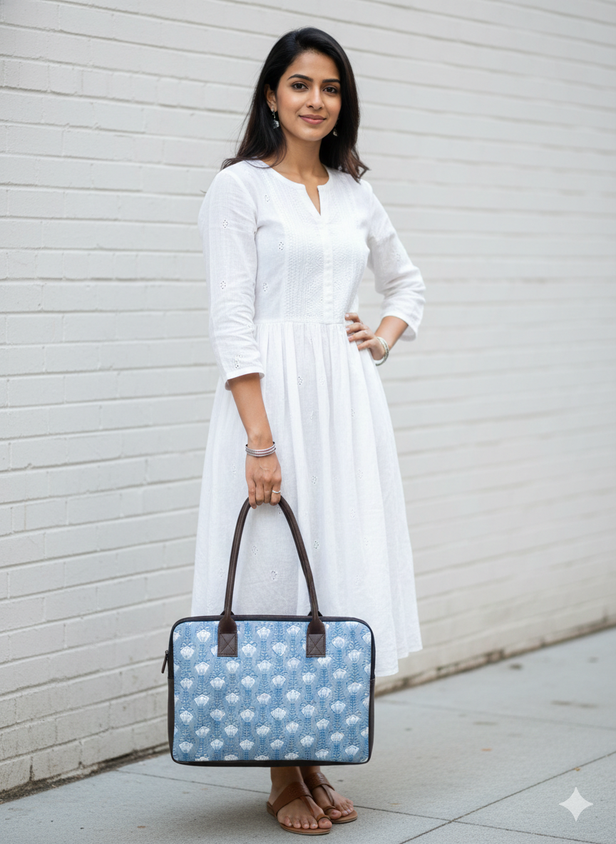Elevate your everyday essentials with this exquisitely crafted Jaipuri Handmade Laptop Bag. Rooted in the rich textile heritage of Jaipur, this bag combines traditional artistry with modern functionality. Handcrafted by skilled artisans, it features vibrant block prints, intricate embroidery, and eco-friendly cotton or jute fabric that showcases the timeless charm of Rajasthan.